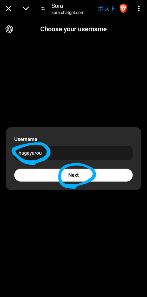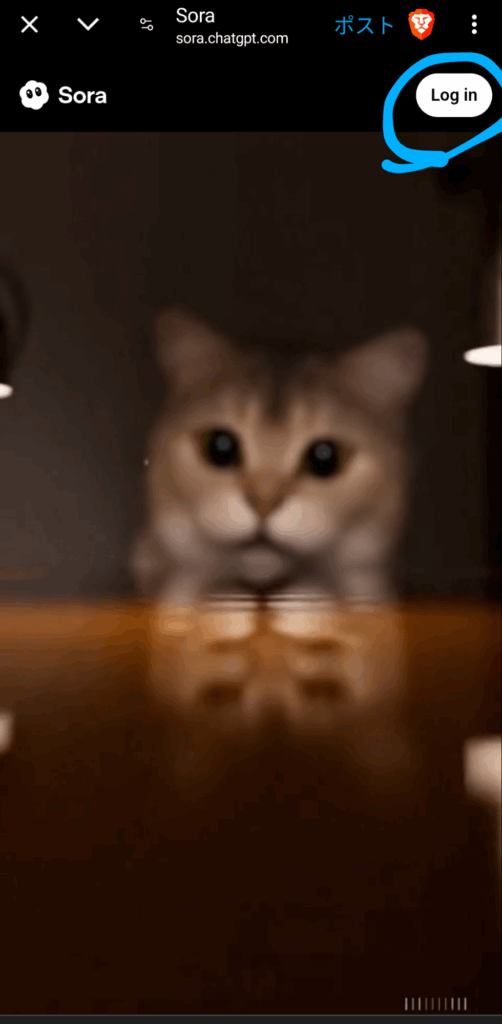 • こちらのページ(https://sora.chatgpt.com/)にアクセスし、既存のOpenAIアカウント(ChatGPTなどで使用しているものと同じ認証情報)でサインインします。